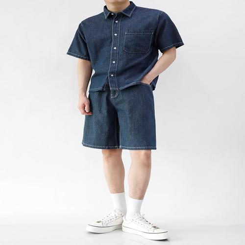 남자 반팔 데님셔츠 루즈핏 청남방 시원한 여름 캐주얼 데일리 남방 2색상