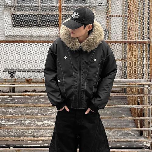 [히코튼]라쿤 퍼 후드 크롭 점퍼
