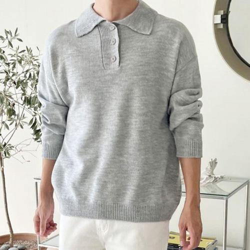 [모노무드]MMO 일상용 칼라 단추 룩 트렌디 남성빅핏 롱티 니트상의