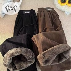 1+1 남자 기모 와이드 팬츠 밴딩 스트링 코듀로이 방한 겨울바지 일자 캐주얼 융털바지