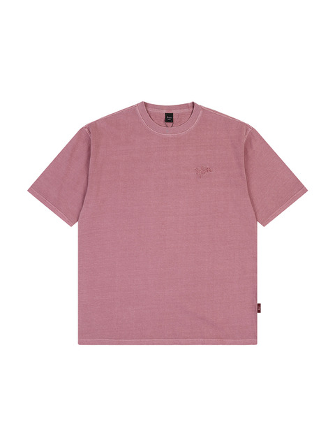 [더블유스탠다드] 로고 자수 피그먼트 반팔 티셔츠 [INDIE PINK]