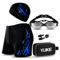 남성용 사각 수영복 5종 세트 쿽건 대사이즈 수영모자 수경 수영복 3종 세트