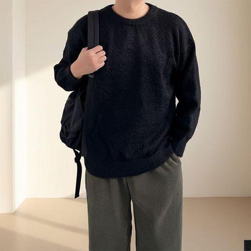 남성 댄디 라운드넥 니트 빈티지 앙고라 스웨터 가을 겨울 풀오버 힛템