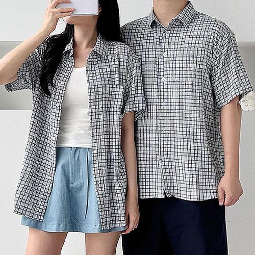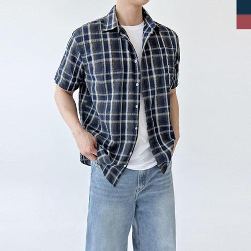 [오너클랜]인기상품 남자 린넨 체크 반팔 셔츠 오버핏 여름 [WFK79PX_260406]