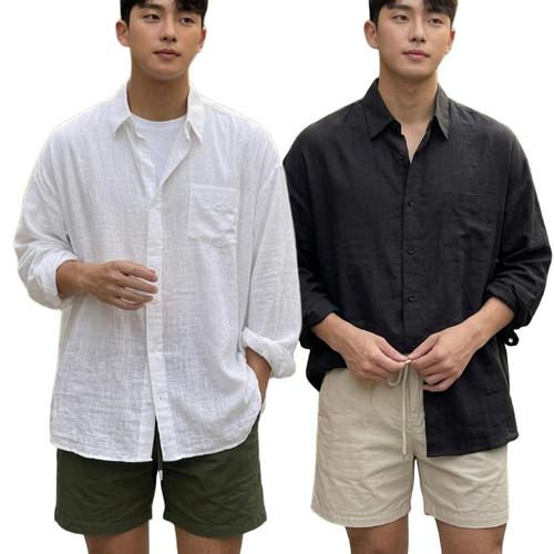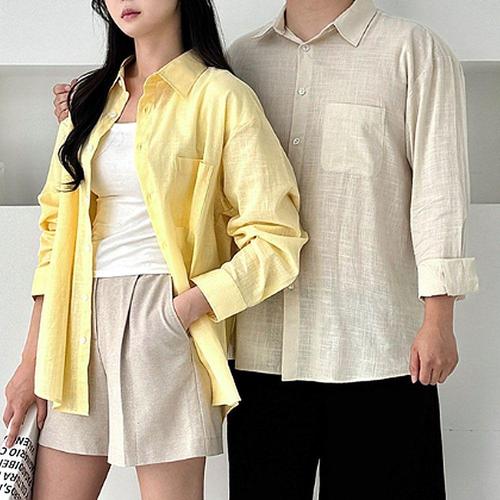 [오너클랜]인기상품 남녀공용 린넨 오버핏 무지 긴팔 셔츠 여름 남방 [WFJOOWV_260323]