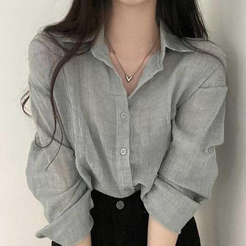 [오너클랜]인기상품 여름 긴팔 오버핏 봄 컬러 커버업 셔츠 캐주얼 카라 [WFJ8PUR_260320]