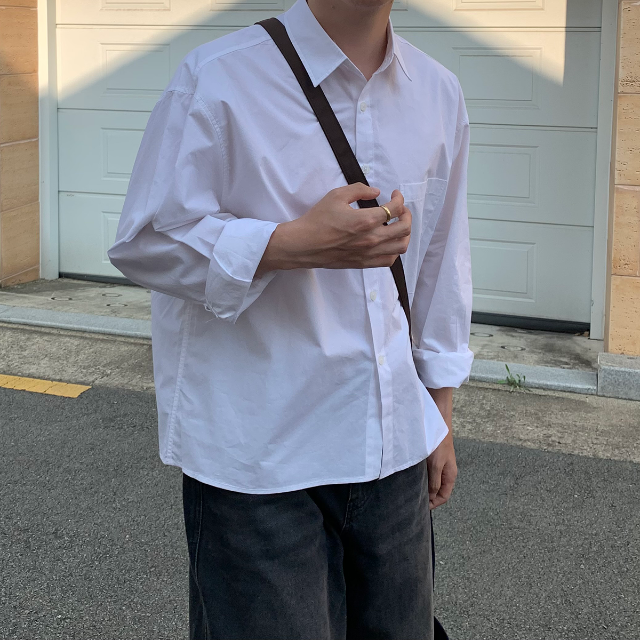 오버핏 남자 가을 신상셔츠 솔리드 드레스 셔츠 신상 (WFJRVA6)