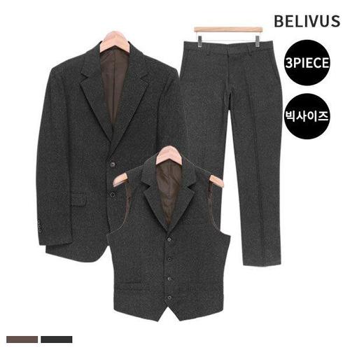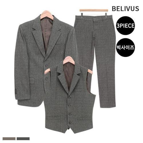 [빌리버스]빌리버스 남성 빅사이즈 스리피스 셋업 BIT052 남자 조끼 더블 자켓 슬랙스 수트 세트