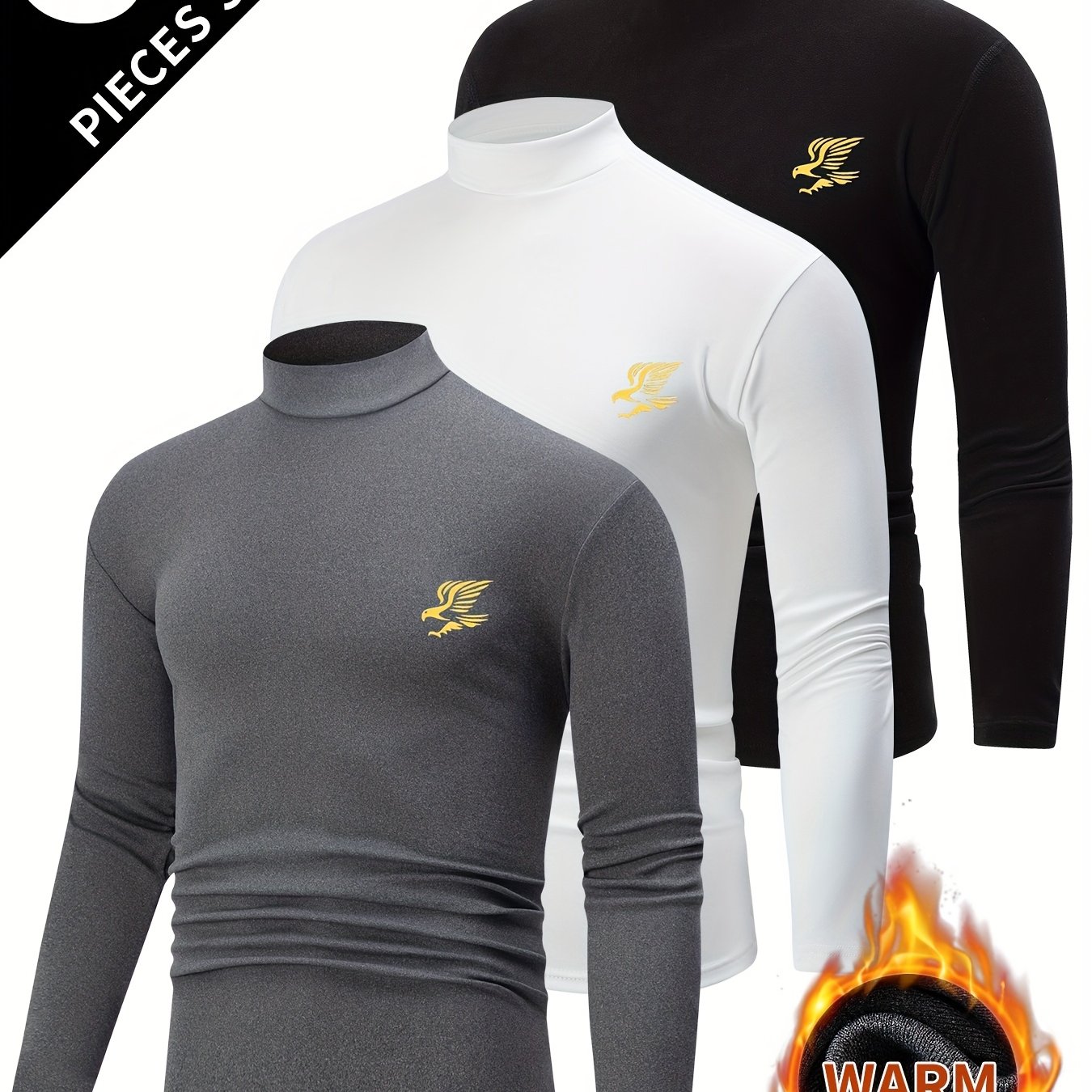 TEMU 3개 남성용 양면 플리스 하이넥 긴팔 티셔츠 - 두꺼운 따뜻한 겨울 베이스 레이어, 단색 레귤러 핏 캐주얼 탑, 가을 & 겨울용 남성 보온 티셔츠, 플리스 티셔츠|티셔츠|남자셔츠|셔츠
