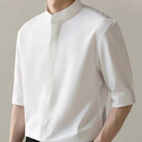 화이트 헨리넥 셔츠 남성 차이나카라 여름 구김없는 린넨