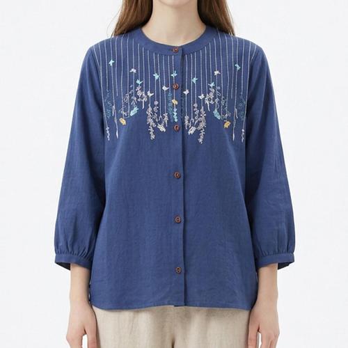 화세 드롭플라워헨리넥버튼셔츠_HB6SSH030C