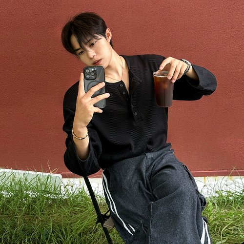 남성패션 라운드넥티 봄가을 슬러브 헨리넥 긴팔 티셔츠 패션 얇은 캐주얼 힛템