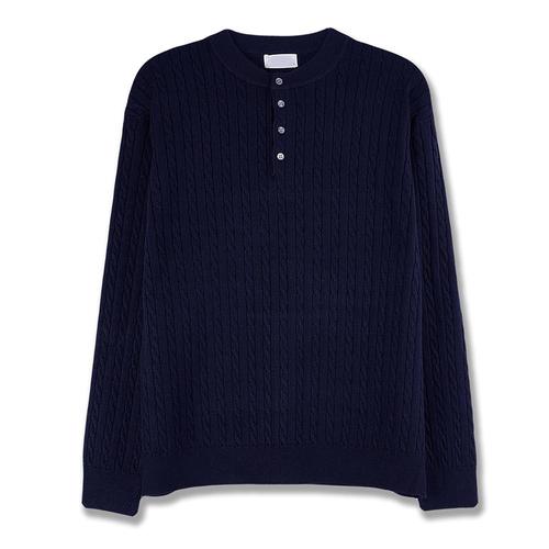 [리빌모아]남자 케이블 라운드 헨리넥 니트티 SG-KN-Q038-네이비
