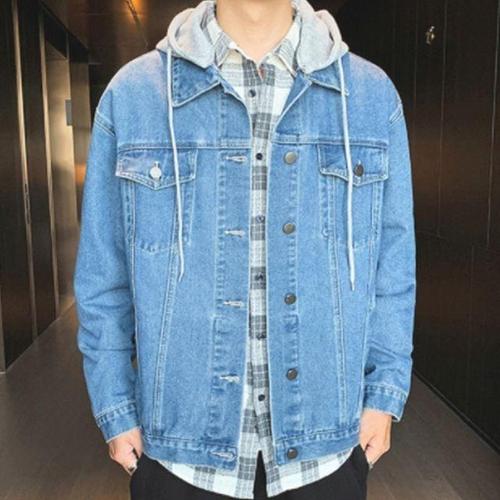 데님 가을 청자켓 아우터 후드 남자 오버핏 자켓 (3jWaQ)