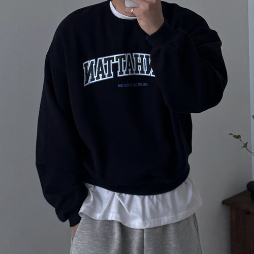 제로스샵 / 남친룩/꾸안꾸 맨하탄 세미크롭 기모 오버핏 맨투맨