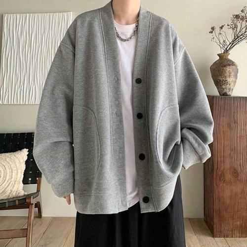 남성 오버핏 브이넥 베이직 캐주얼 가디건 니트 자켓 남친룩 스타일 WFLMEJO