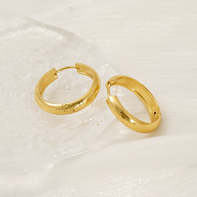 TEMU 고품질 스테인리스 스틸 저자극성 골든 후프 여성용 귀걸이, 변색 방지, 편안하고 다용도, 심플하고 우아한, 일상 착용이나 파티용 패셔너블 남성용 귀걸이, 보석 액세서리, 여성에게 섬세한 선물