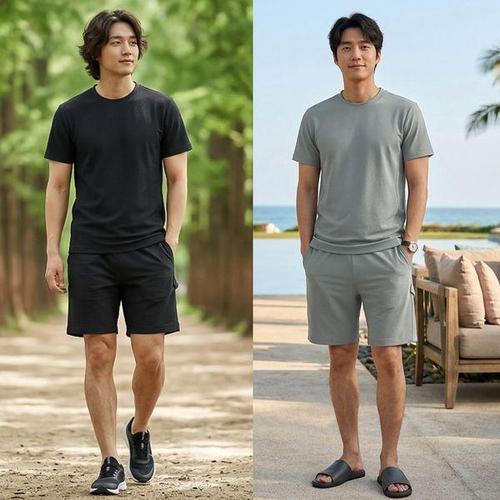 [에이엠]AM시어서커 냉감 반팔세트 티셔츠반바지 트레이닝세트