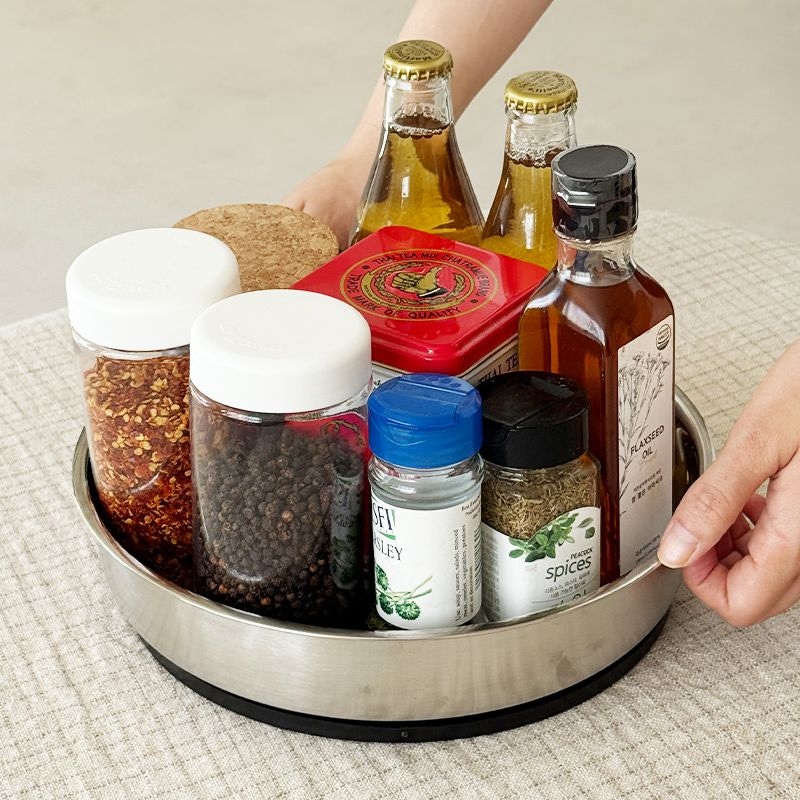 360 회전 스텐 회전트레이 스틸 양념통 다용도 냉장고 수납정리 실버 / 블랙 2color