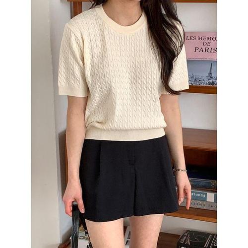 [샵앤]여성 라운드넥 케이블 꽈배기 데일리 반팔 니트 티셔츠 21DS-WKN-4382-네이비