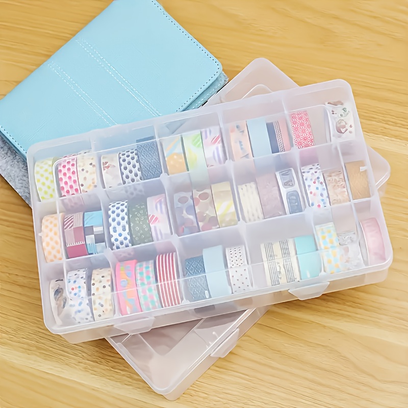 TEMU 15구 투명 플라스틱 테이프 정리함 - 내구성 있는 폴리프로필렌 데스크탑 보관 박스, 와시테이프 & 공예용품 및 사무용품 수납, 휴대용 디자인 [4계절], 리본 보관함