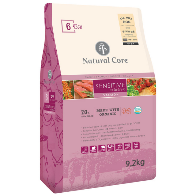 네츄럴코어 에코6 센시티브연어 강아지사료 10kg 작은알