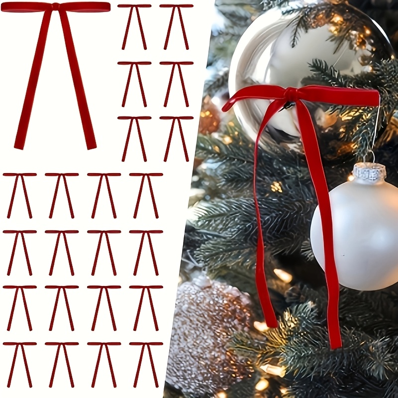 TEMU 24개 벨벳 리본 활 장식, 글램 스타일, 다재다능한 매달 장식, 전원 필요 없음, 크리스마스 트리, 화환, 현관 장식, 휴일 및 축하 행사, 다양한 경우에 적합