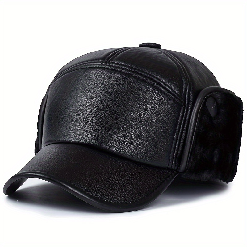 TEMU 1pc 남성용 윈터 아웃도어 모자, 업그레이드된 PU 가죽 귀 덮개 모자, 플러시 안감, 방풍 및 따뜻함, 100% 폴리에스테르 직물, 손 세탁만 가능합니다.
