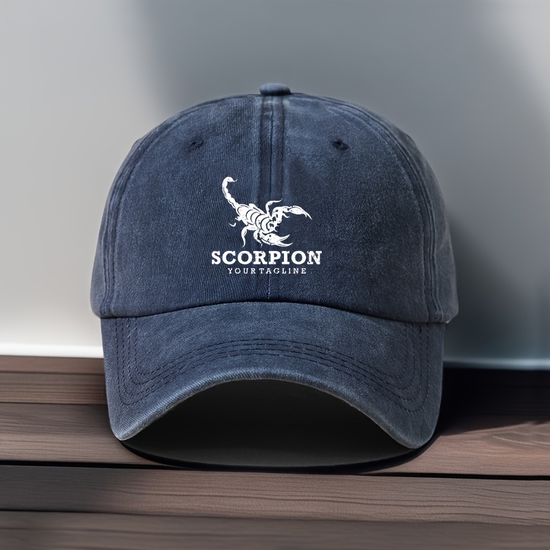 TEMU 1개 전갈 프린트 빈티지 아빠 모자 - 디자인의 블랙 레이온 야구모자, 실외 캐주얼 착용을 위한 조절 가능한 핏