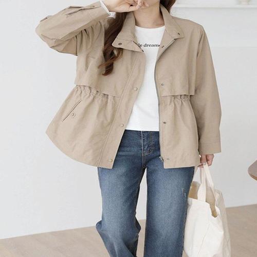 [챌린저]여성 하이넥 케이프 반팔 허리 스트링 자켓 베이지_CHE2WJK2602BE_IC