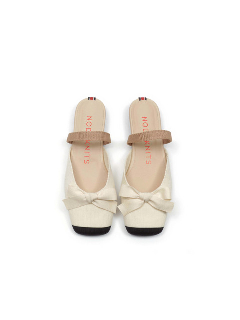 [노도니트] 니트 스퀘어 슬링백 - 리본 블랙토 크림