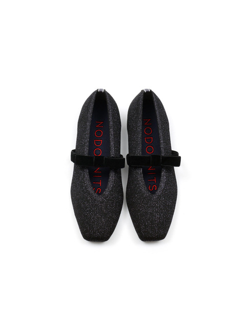 [노도니트] 니트 메리제인 플랫 - 메탈 블랙