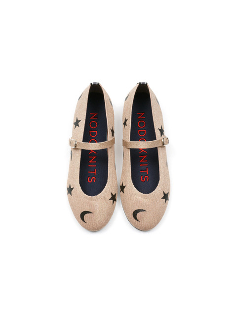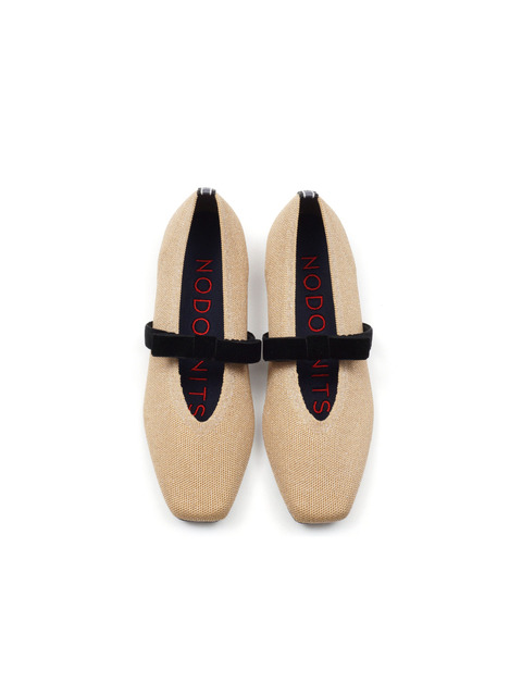 [노도니트] 니트 메리제인 플랫 라운드 - 루나 메탈 골드 & 블랙