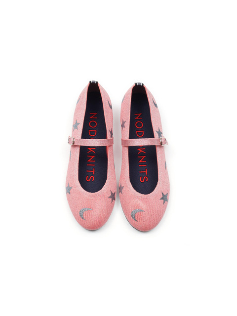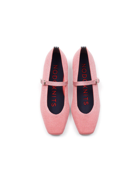 [노도니트] 니트 메리제인 플랫 - 루나 메탈 핑크 & 그레이