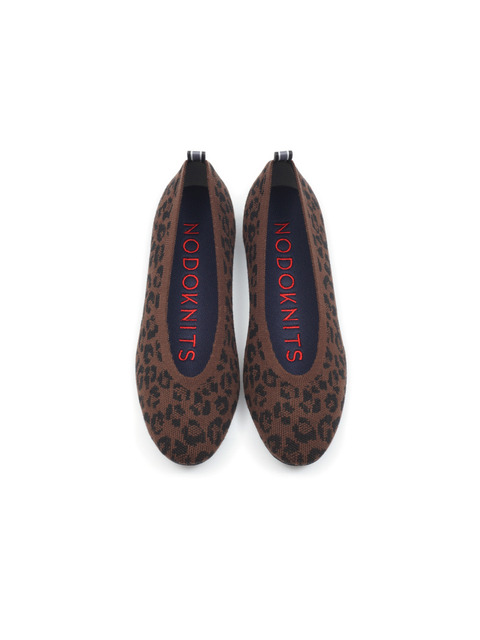 [노도니트] 니트 플랫 라운드 - 레오파드 커피브라운