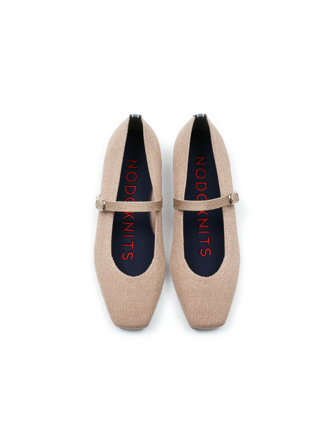 [노도니트] 니트 메리제인 플랫 스퀘어 - 메탈 핑크