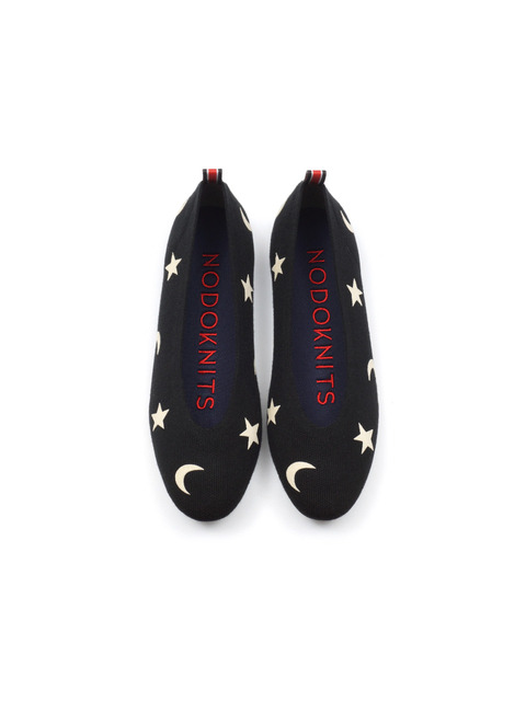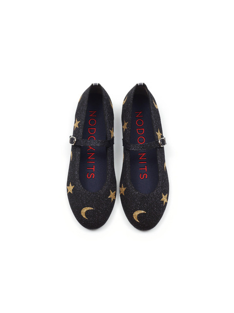[노도니트] 니트 메리제인 플랫 라운드 - 루나 메탈 블랙 & 골드