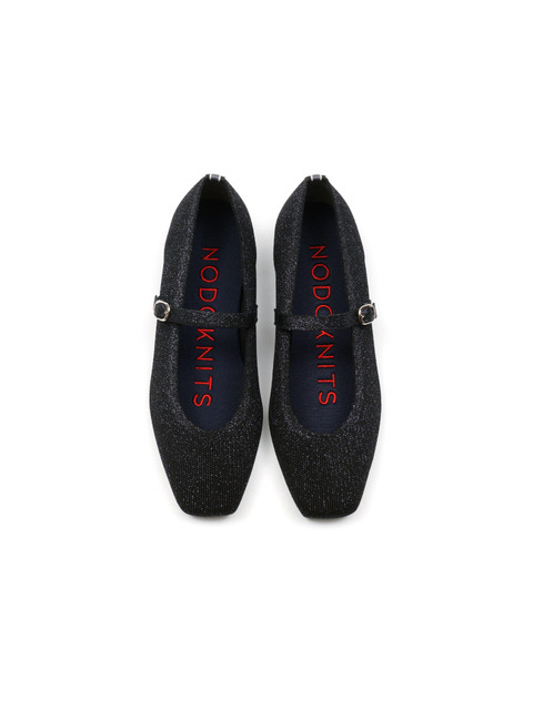 [노도니트] 니트 메리제인 플랫 스퀘어 - 메탈 블랙