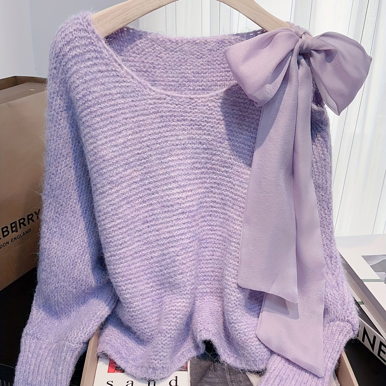 TEMU 여성용 패션 스위트 보우노트 디자인 배트윙 슬리브 스웨터, 새로운 가을/겨울 루즈핏 크롭 풀오버, 예쁜 여성용 상의