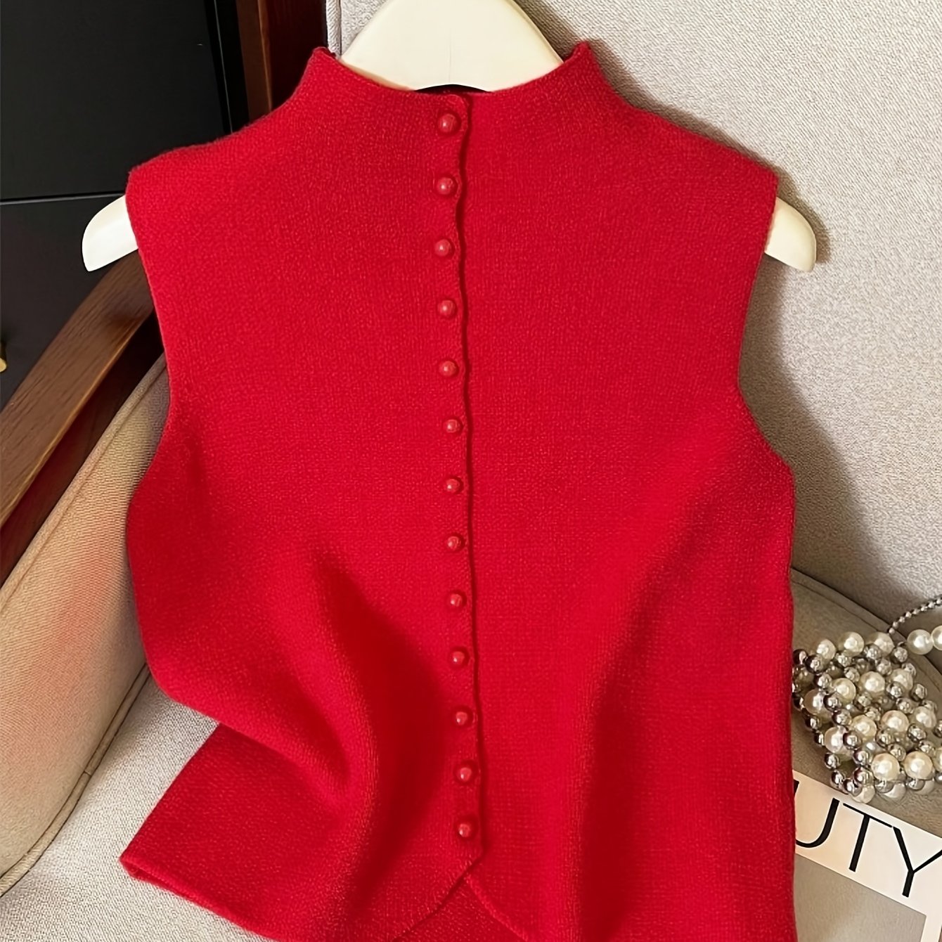TEMU 여성용 민소매 버튼 프론트 스웨터블라우스 - 솔리드 컬러 민소매 라운드넥 블라우스, 버튼 프론트 플라켓, 세탁기 사용 가능한 우아한 루즈핏 스웨터, 데일리웨어, 파티 & 비즈니스용 - 다용도 (우아한 스페셜)