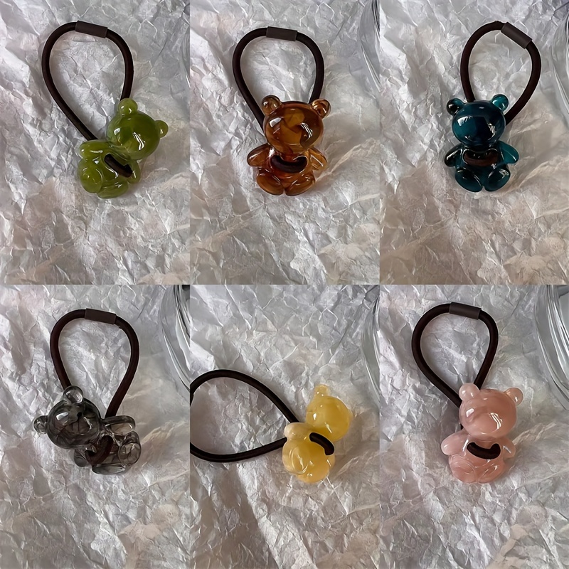 TEMU 6-팩 귀여운 동물 곰 머리 끈, 여성과 소녀를 위한 단색 플라스틱 머리 끈 세트, 14세 이상을 위한 사랑스러운 곰 모양의 탄성 포니테일 홀더
