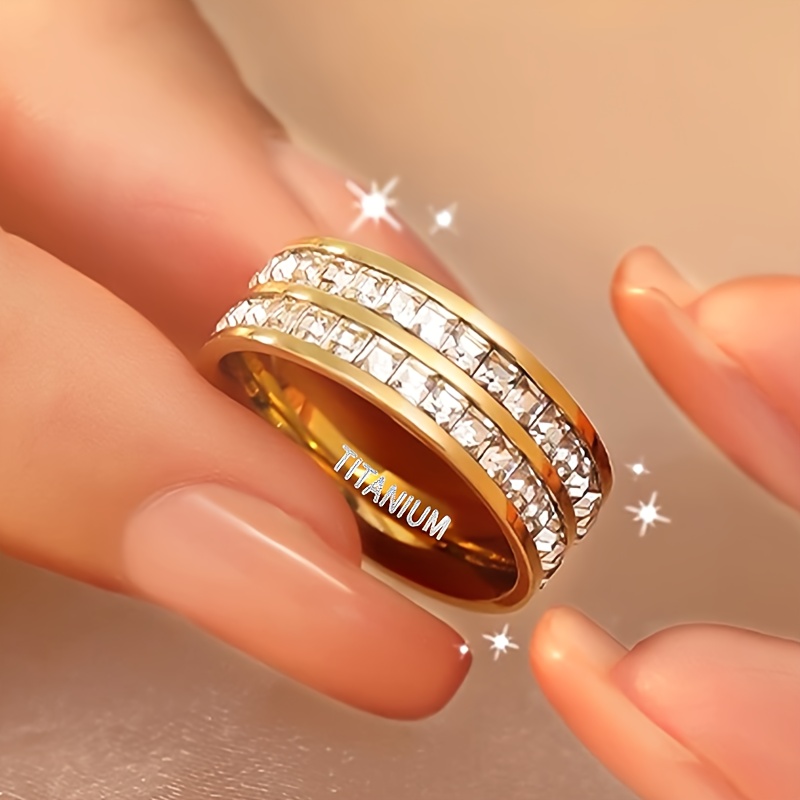 TEMU 스타일리시한 골드 합성 지르코늄 반지 1개, 약혼, 웨딩 밴드, 발렌타인데이 선물로 적합, 십 대를 위한|반지