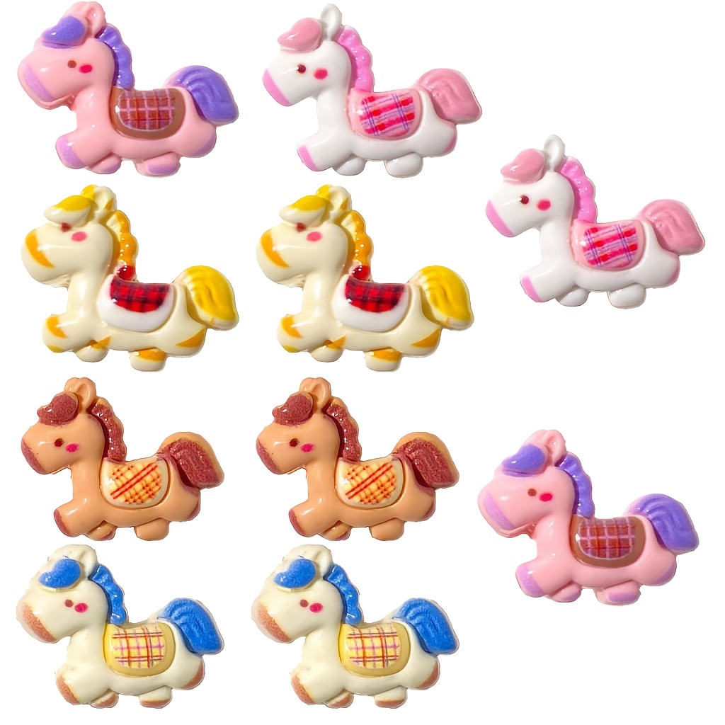 TEMU 10개 말 레진 공예 부자재 | 귀여운 만화 디자인, 주얼리 제작, 헤어 클립, 휴대폰 케이스, 키체인에 적합, 새해/크리스마스/발렌타인데이/어버이날, 부활절, 여성의 날 완벽한 선물