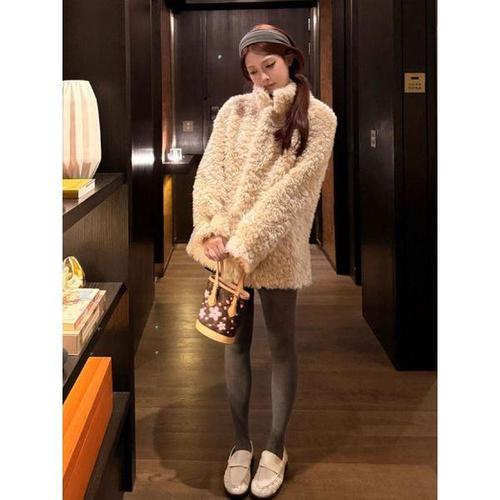 [하젤]로체라 양털 뽀글이 누빔 퍼 하프코트_S4453