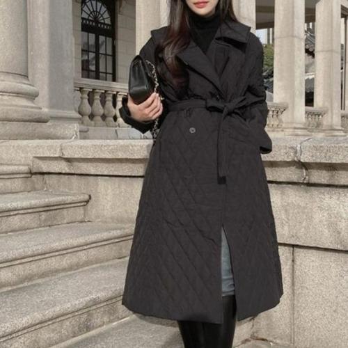 [엄지척]여성 빅사이즈 카라 벨티드 A라인핏 누빔 롱코트_20226574_667501