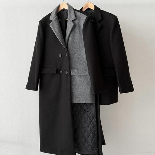 L. 울 블렌디드 퀼팅안감 더블 롱코트