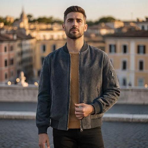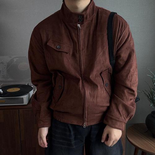 [프리오]헤링턴 누빔 스웨이드 크롭 블루종 자켓 1Color