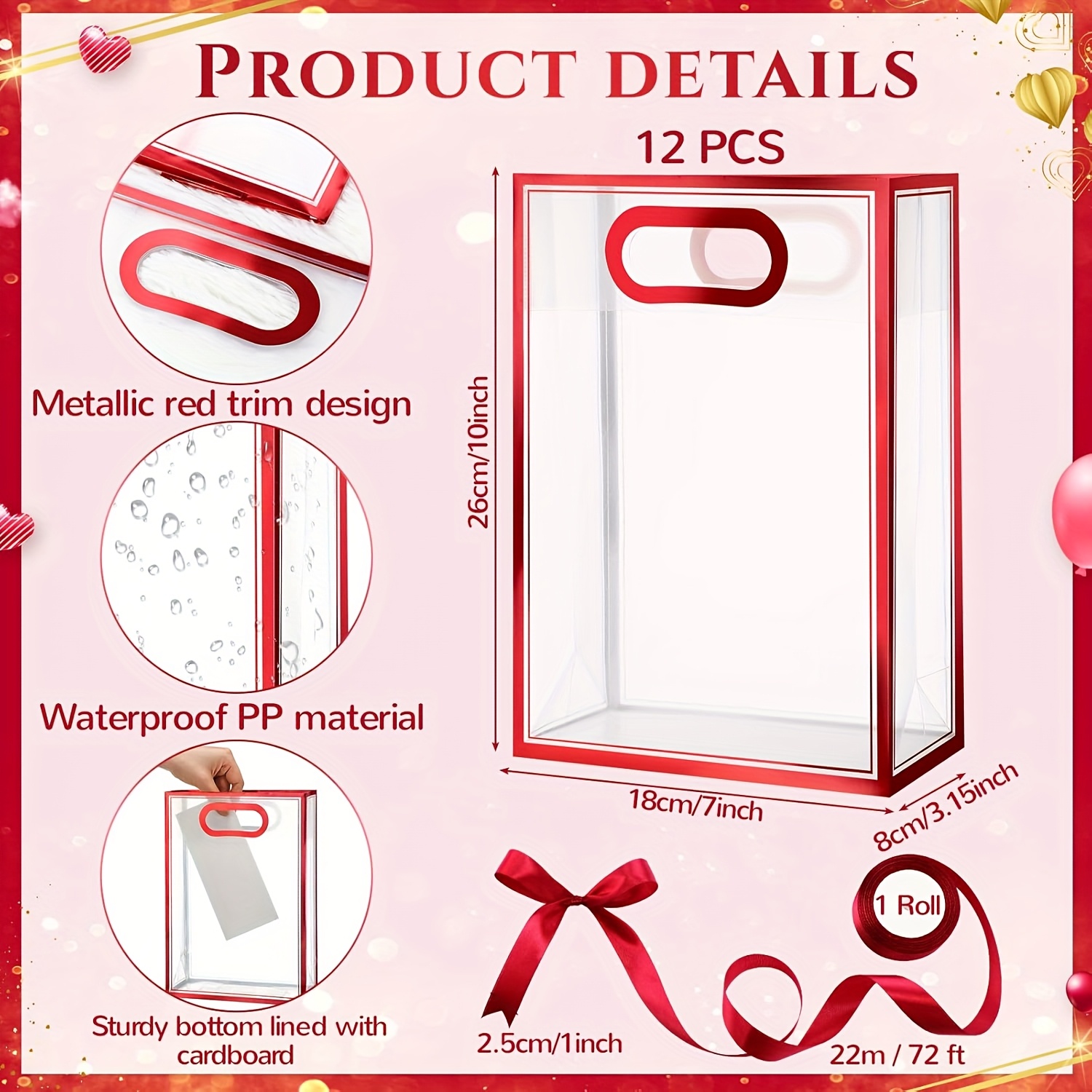 TEMU 선물 포장 봉투 12개 세트, 리본 1롤 포함, 사업 선물, 생일, 새해, 중요한 기념일, 밸런타인데이, 어머니의 날, 졸업 시즌, 결혼식 행사, 크리스마스 선물 가방, 결혼식, 감사 선물용으로 이상적
