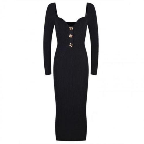 스퀘어넥 버튼 니트 롱원피스 슬림핏 하객룩 2color SL-1004428 WFKMFNN
