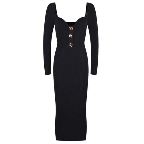 DUGNMARKT 스퀘어넥 버튼 니트 롱원피스 슬림핏 하객룩 2color 니트롱 절개 라인